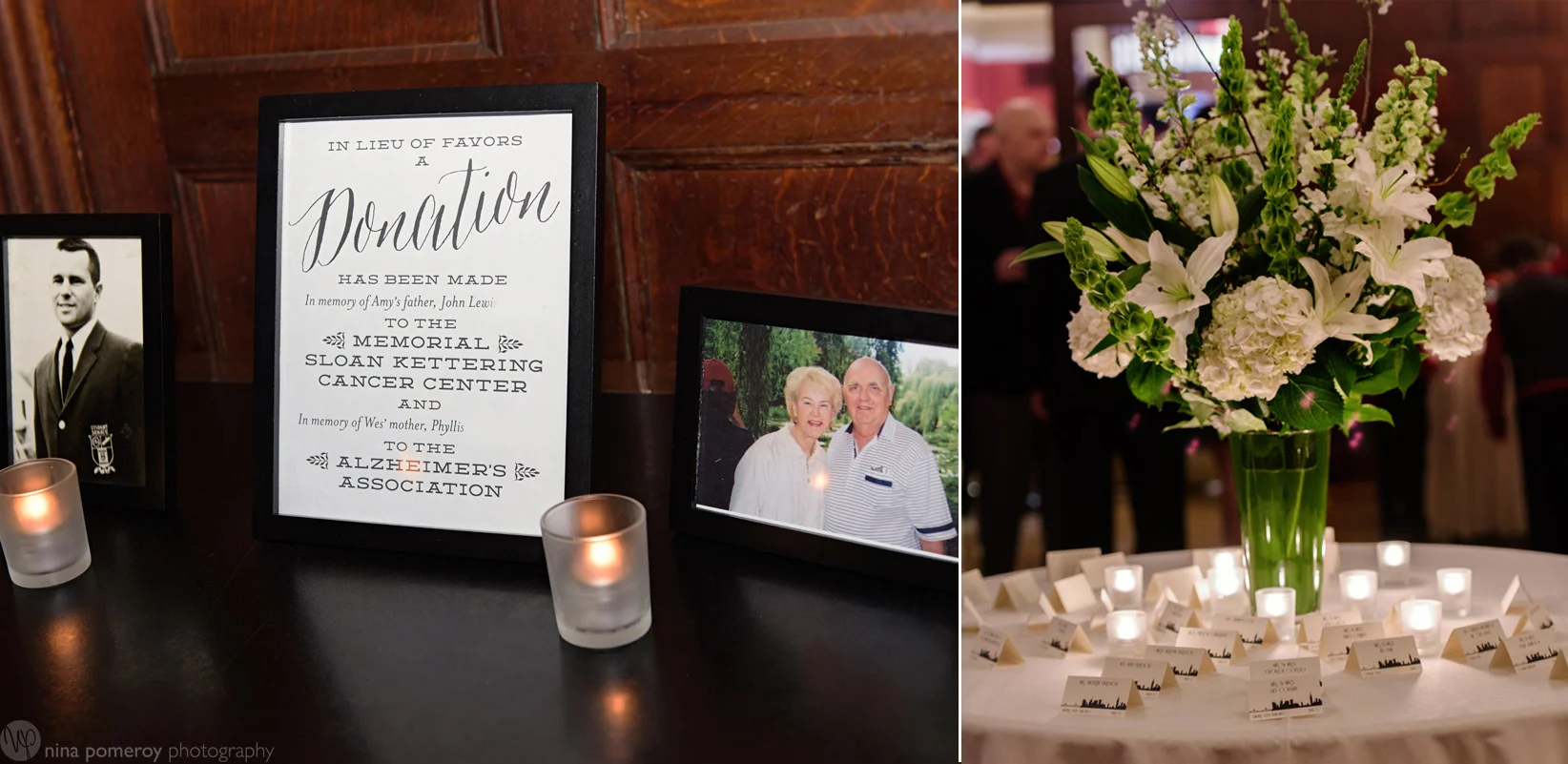 I've known Amy professionally for a few years so when she asked me to photograph her wedding celebration it was a definite yes! The elegant New York themed party took place at the Harvard Club in midtown Manhattan. This location is a very old traditional New York institution with history at every turn. It featured a grand staircase filled with paintings of famous people who have attended Harvard and a Grand Hall where the ceilings went up to the sky with crystal chandeliers. The room was filled with friends and family that were thrilled to celebration with this special couple.